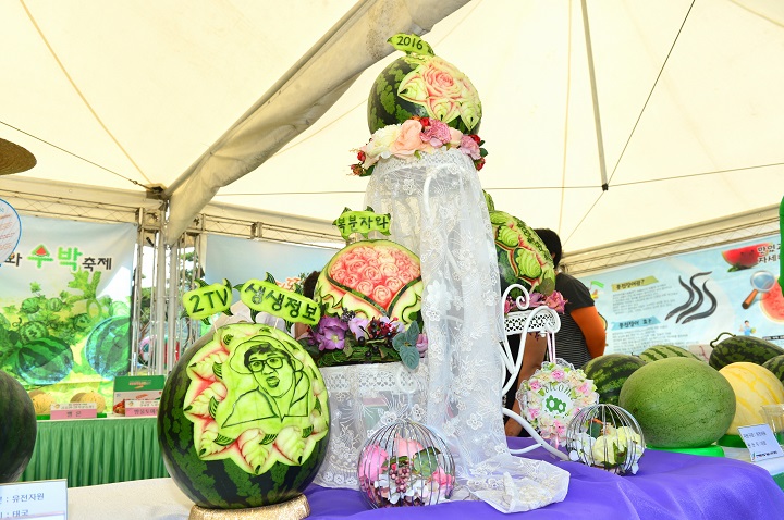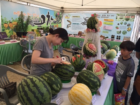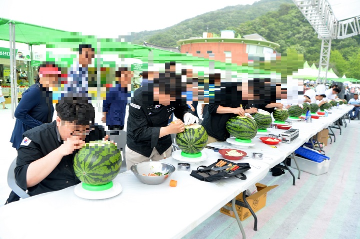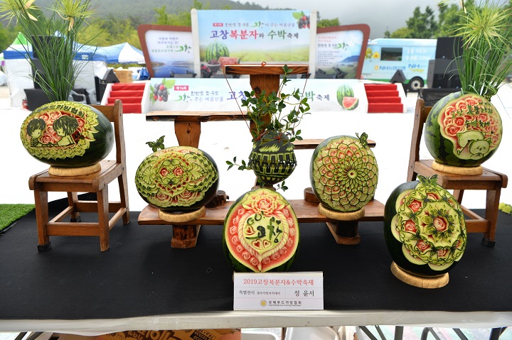 고창 명품 수박으로 전문 카빙 선수들이 수박을 조각해서 멋진 작품을 제작합니다.