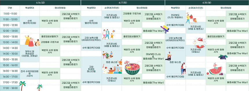 ✔ 명품 수박 빨리 먹기 대회 (3일간 11:30~12:30 진행)