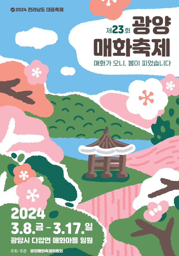 봄이 다가오면 광양에는 매화가 가득 피어납니다. 2024년에도 광양매화축제가 돌아왔습니다. 이번 글에서는 2024년 광양매화축제 기간 및 입장료, 행사 프로그램, 주차장 등에 대해서 자세히 알아보겠습니다. 광양매화축제 방문하시기 전에 글 잘 살펴보시고 가시면 좋을 것 같습니다.