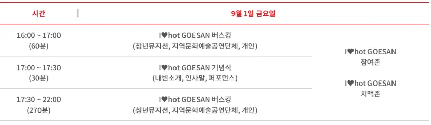 - 진행방식 : 행사장 특설무대를 활용한 버스킹 진행