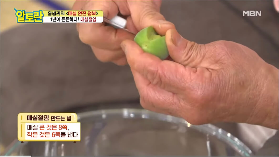 홍쌍리 명인은 너무 쉽게 하시던데 실제로 직접 매실을 6쪽, 8쪽 내다보면 손가락이 얼얼할 거 같아요.