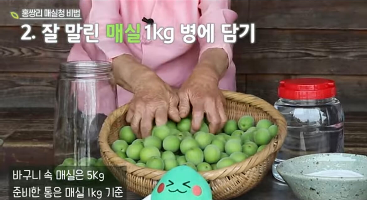 2. 매실 1kg을 통에 넣는다.