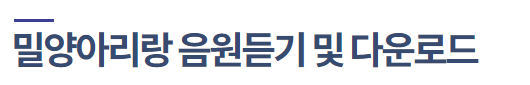 송소희, 함춘호, 숙행, 웅산, 전제덕, 김연자 등의 가수가 부른 밀양아리랑이 여러 버전으로 있으니 한번씩 들어보시면 좋을 것 같습니다.