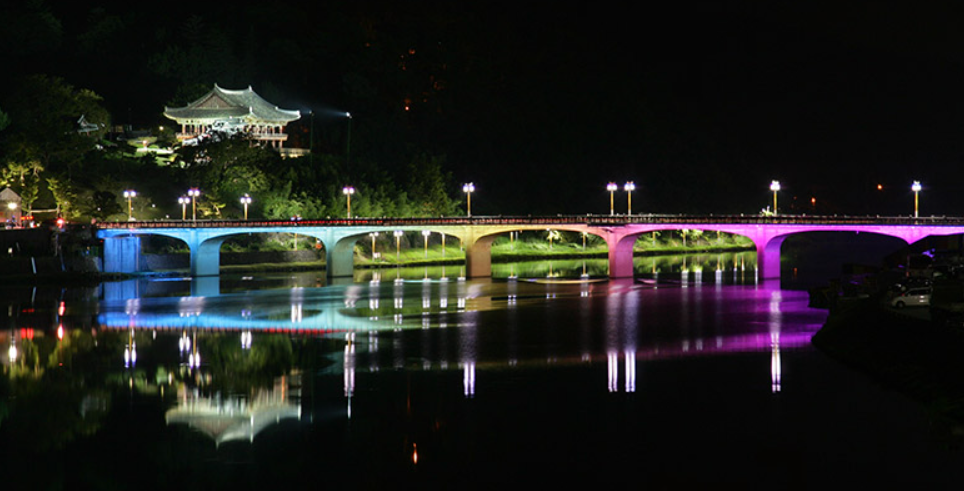 3절에서는 남천강과 영남루 등 밀양의 자연경관을 아름답게 묘사하고 있는데요. 남천강의 굽이치는 모습과 영남루를 둘러싼 자연의 아름다움, 그리고 벽공에 걸린 달빛이 아랑각을 비추는 모습은 마치 한 폭의 그림처럼 아름답습니다.