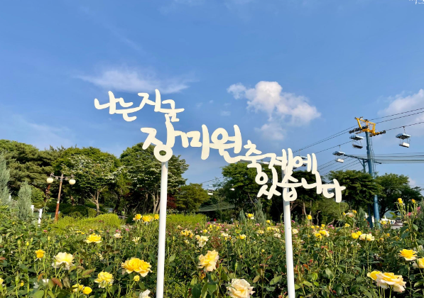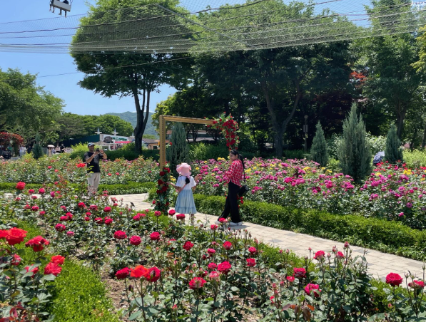 장미원은 약 54,075㎡의 넓은 면적에 179종, 38,000주의 다양한 색상과 향기를 지닌 장미가 식재되어 있습니다. 축제기간 동안에는 원형분수와 바닥분수가 운치를 더하며, 호수 주변의 산책로에서 평화로운 산책도 즐길 수 있습니다.