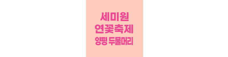 한여름에 피는 꽃의 대표는 연꽃이라고 할 수 있습니다. 지금부터 피기 시작한 연꽃을 여름 내내 볼 수 있는 곳이 있습니다. 서울에서 멀지 않은 곳, 양평 두물머리에 있는 세미원에서 연꽃 축제가 열린답니다. 세미원 연꽃 문화제 일정과 주차, 입장료 등 정보 총정리해 보겠습니다.