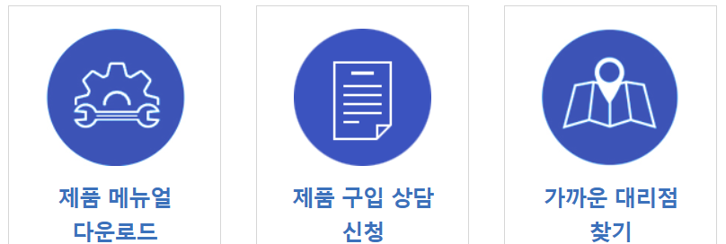 벽걸이형, 스탠드형, 특수형, 대형 중에서 해당되는 것을 누르고 상세보기를 누르면 되는데요. 상세보기 페이지 하단에 보면 '제품 메뉴얼 다운로드' 메뉴가 있어요. 그것을 클릭하면 매뉴얼을 다운받을 수 있습니다.