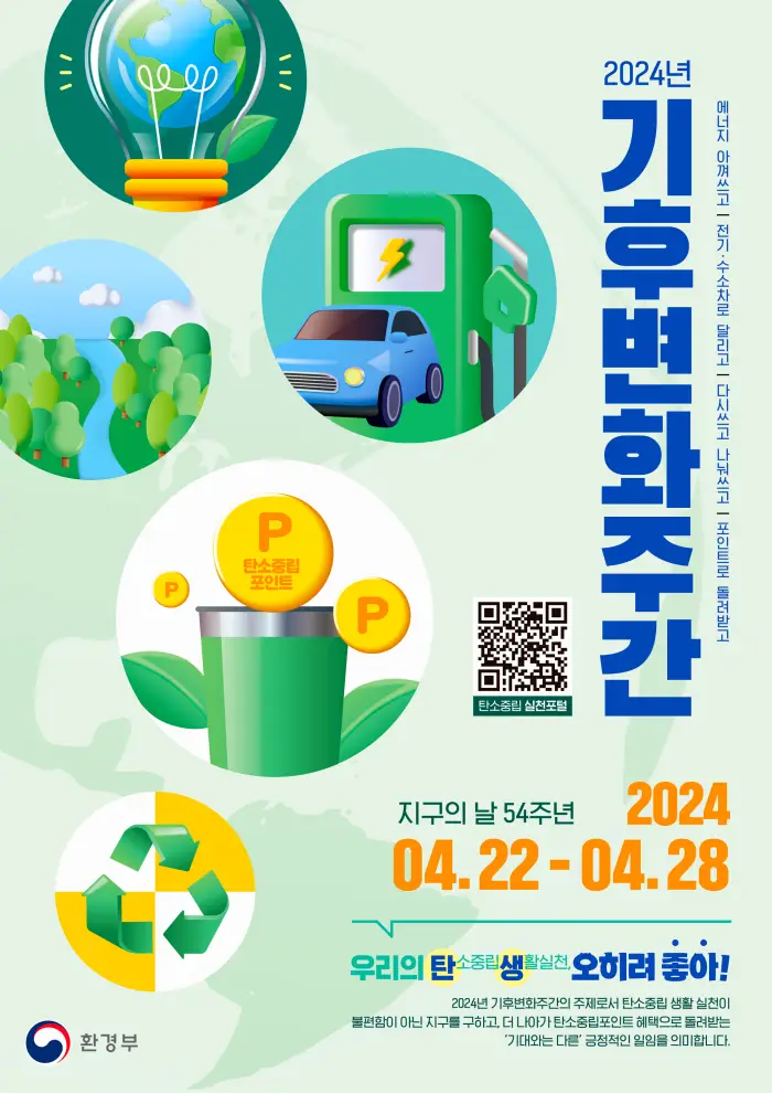 이와 더불어, 4월 22일부터 28일까지는 '2024 탄소중립 기후주간'으로 지정되어 기후변화에 대한 인식을 더욱 높이고, 구체적인 행동을 촉진하는 다양한 프로그램이 진행됩니다.