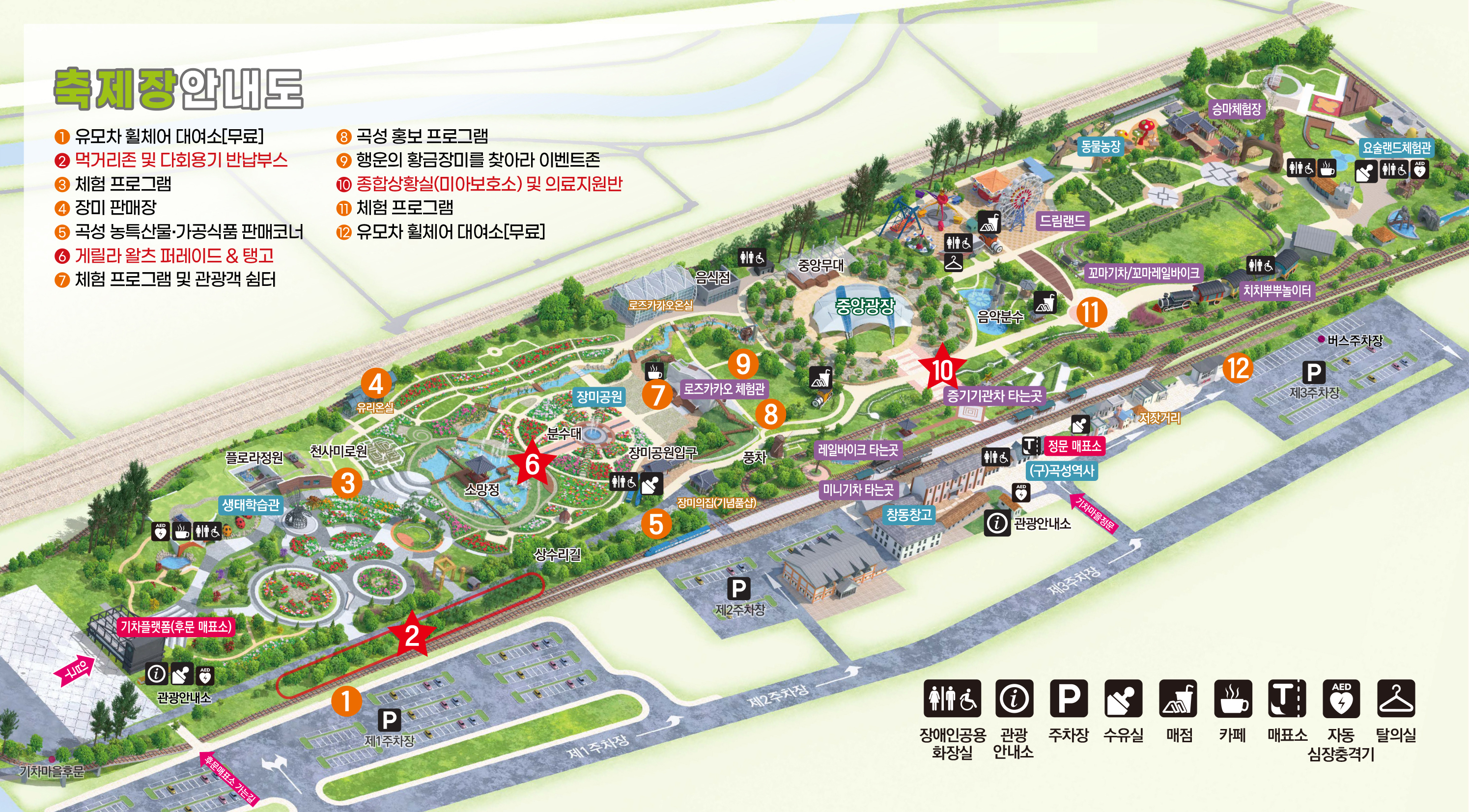 - 제1주차장: 곡성군 오곡면 기차마을로 294, 장미공원 후문 입구